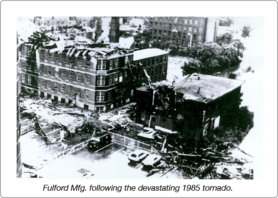 Another Englishman, Metallurgical Engineer Anthony Hart, purchased the company from the Woodward family in 1985. The company suffered a major setback a year later when the 85,000 square foot facility was hit and totally destroyed by a tornado (see image right). Mr. Hart's distinguished leadership skills were evident when he moved the company to temporary facilities and managed to meet all delivery commitments within one week.